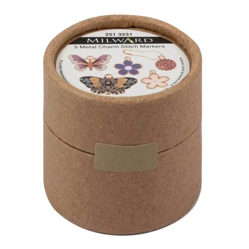 El Pack de 5 Marcadores de Punto Butterfly Garden de Milward ofrece accesorios perfectos para marcar aumentos, disminuciones, inicios de vuelta y más en tus labores de punto o ganchillo. El pack incluye marcadores dorados adornados con encantadores abalorios de mariposas y flores. Ligeros y fáciles de usar, se colocan y retiran fácilmente de tus proyectos.