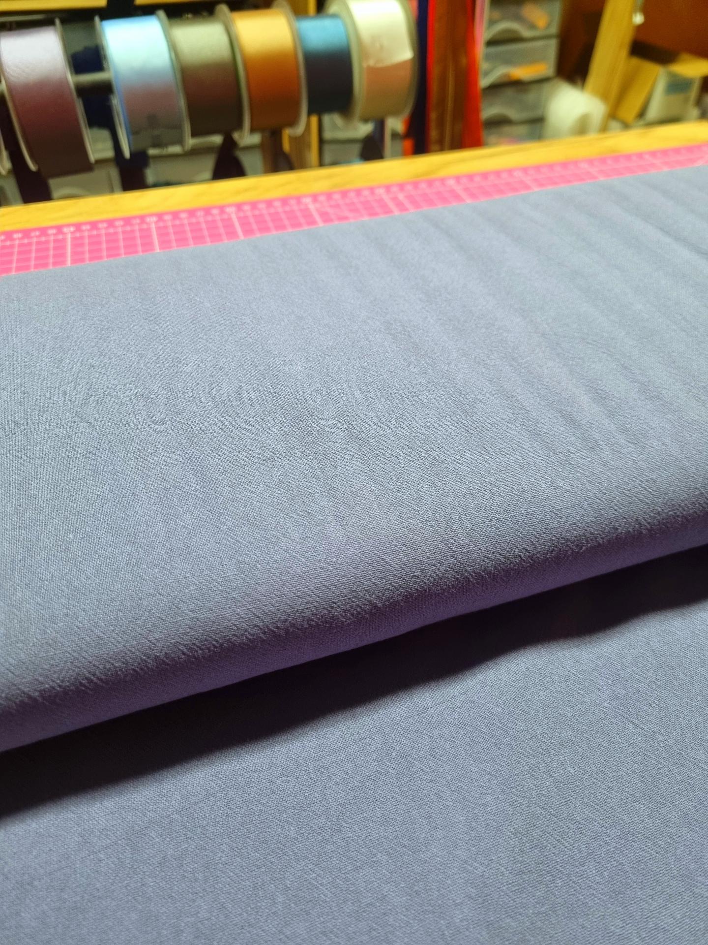 Tela de algodón 100% en color azul country con una textura “rústica”, algo más gruesa que un algodón habitual y un tacto no tan suave sino más natural.