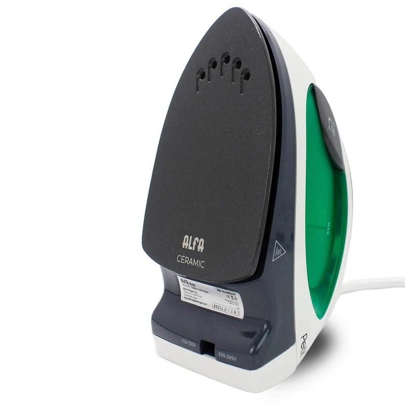 Plancha Alfa Petit de Viaje, compacta, ligera y con hasta 1100 W de potencia. Su suela cerámica, el golpe de vapor de 40 g/min y el calentamiento en solo 30 segundos garantizan un planchado rápido y eficaz en cualquier tejido. Con doble voltaje, depósito de 80 ml, cable de 1,9 m y accesorios incluidos. ¡Perfecta para llevar siempre la ropa impecable vayas donde vayas!