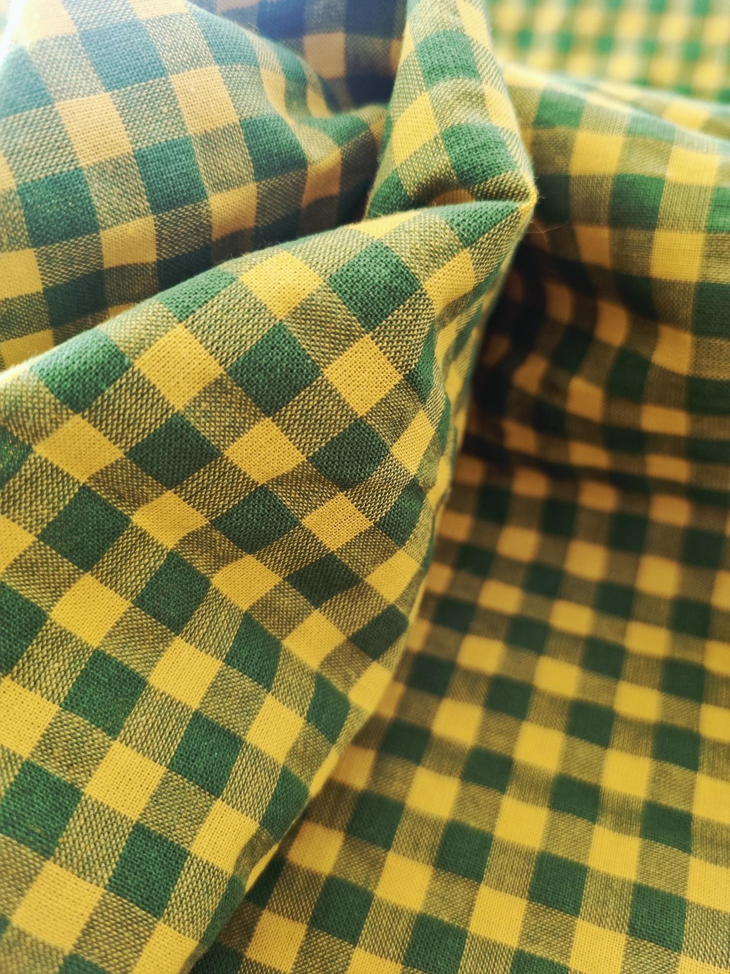 La tela seersucker es un clásico de primavera-verano: ligera, transpirable y con el relieve característico que crea un efecto “arrugadito” muy bonito. Esa textura hace que la tela no se pegue al cuerpo y, además, ayuda a que el acabado se vea bien incluso sin planchado perfecto.