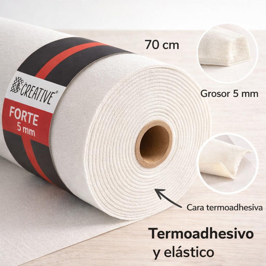 El 5 mm Termoadhesivo Forte D’Creative está pensado precisamente para eso: aportar una estructura sólida y duradera, con una fijación más cómoda gracias a su cara termoadhesiva. Además, forma parte de una gama diseñada específicamente para costura creativa, donde no solo importa dar cuerpo al proyecto, sino que también sea posible trabajarlo bien y obtener un resultado final de nivel profesional.